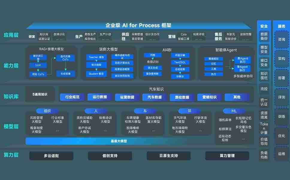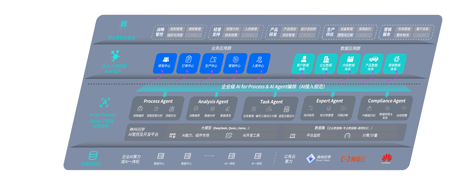 NG大舞台问学智车解决方案是一套基于AI技术的汽车行业智能化系统,,,,覆盖从底层算力到顶层AI应用的全栈方案。。方案由算力层、、模型层和应用层组成:算力层,,方案支持多种一体机配置,,具备云端灵活部署、、、多云适配以及动态优化计算资源的能力;模型层,,,,NG大舞台问学平台版提供了企业级AI应用一站式构建与管理平台,,,,支持基于后训练强化技术的汽车企业专属模型的训练、、、、评测和运营;应用层,,NG大舞台问学DeepSeek版提供包括超级员工、、、智能招采、、、智能营销、、智能客服、、、、AI for BI等一系列解决方案,,可助力汽车行业实现数字化转型,,,,让管理更智能、、、、响应更敏捷。。